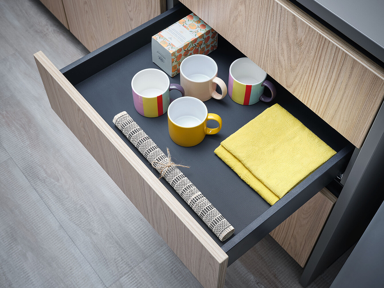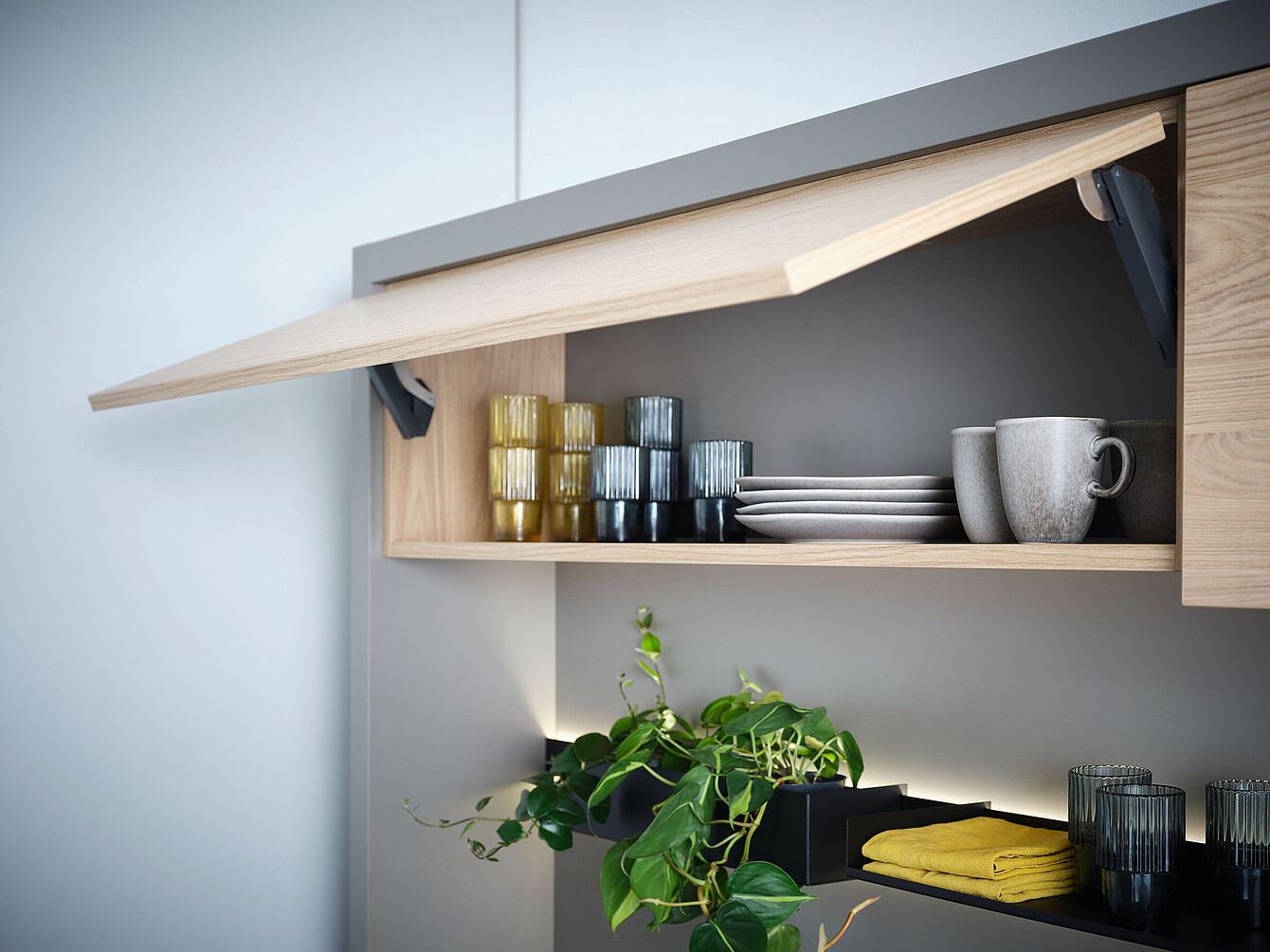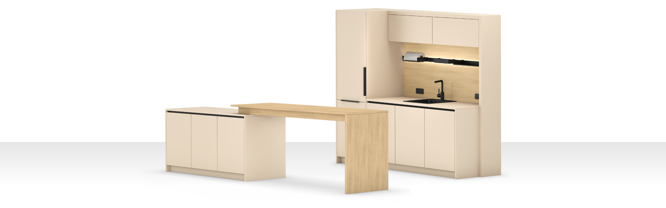 Thanks to their timeless design and numerous positioning options, modules fit harmoniously into any space: as a wall-positioned kitchen unit, as a room divider or as an island. The units are designed to be self-supporting, requiring no wall or floor mounting.