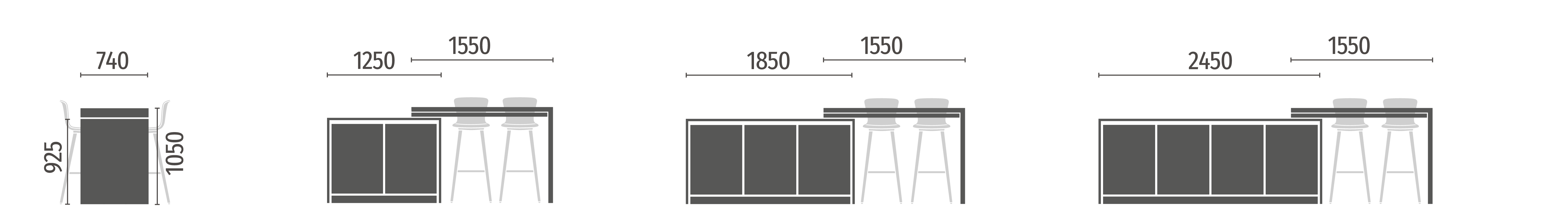| Island with a table attached on the side, Depth 740 mm | ![]() |