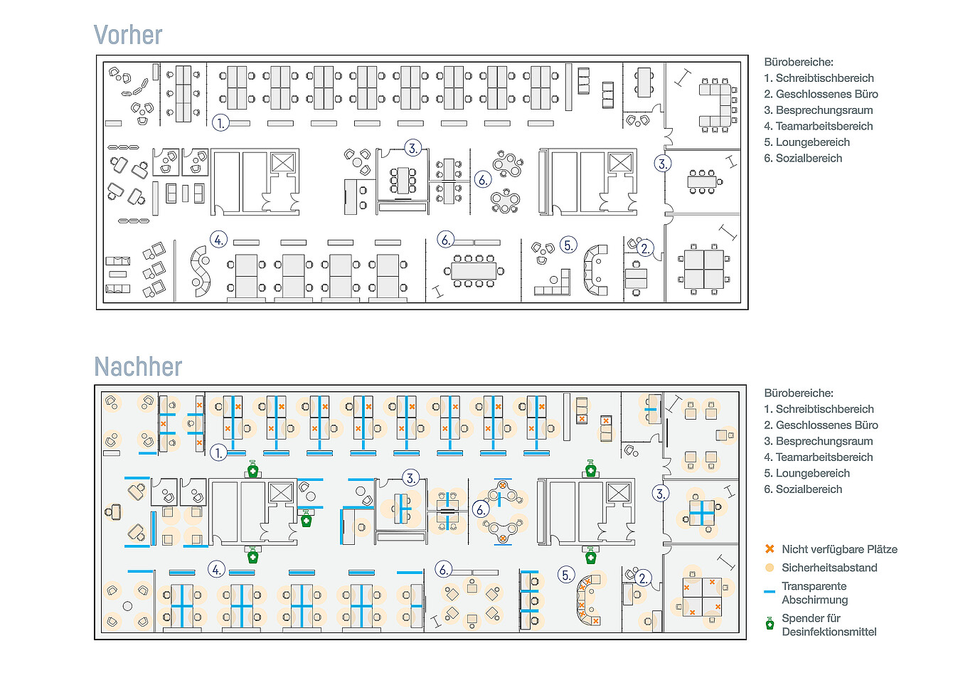 Besondere Umstände erfordern besondere Maßnahmen. Dabei haben der persönliche Schutz am Arbeitsplatz und der Schutz der Kollegen einen wichtigen Stellenwert eingenommen. Um auch im Großraumbüro und an Doppelarbeitsplätzen zusätzliche Abschirmung zu ermöglichen, gibt es von Sedus sowohl Aufsatz-Elemente für das die Sichtschutzwände se:wall als auch flexible Acrylglas scheiben zum Aufstellen. So können Partikel zurückgehalten und zusätzlicher Schutz am Arbeitsplatz realisiert werden.