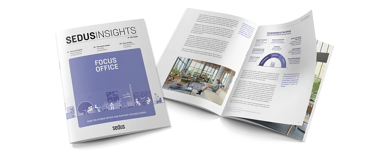 The trend magazine Sedus INSIGHTS #20 presents research findings and practical design solutions to help you achieve “Focus in the Office.”