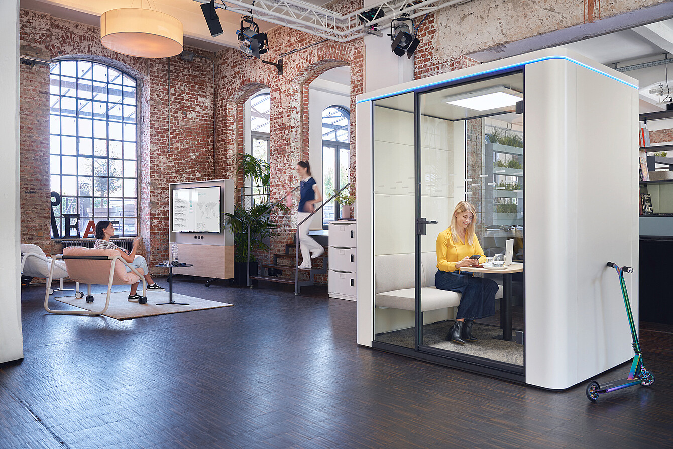 Wherever people are present, there is a certain amount of background noise. Typing on the computer, the rattling of the printer and the small talk of colleagues can quickly be perceived as disturbing and distract from one's own tasks. The se:cube product family offers soundproofed retreats for temporary use, which have now been tested and certified by TÜV as a complete system.