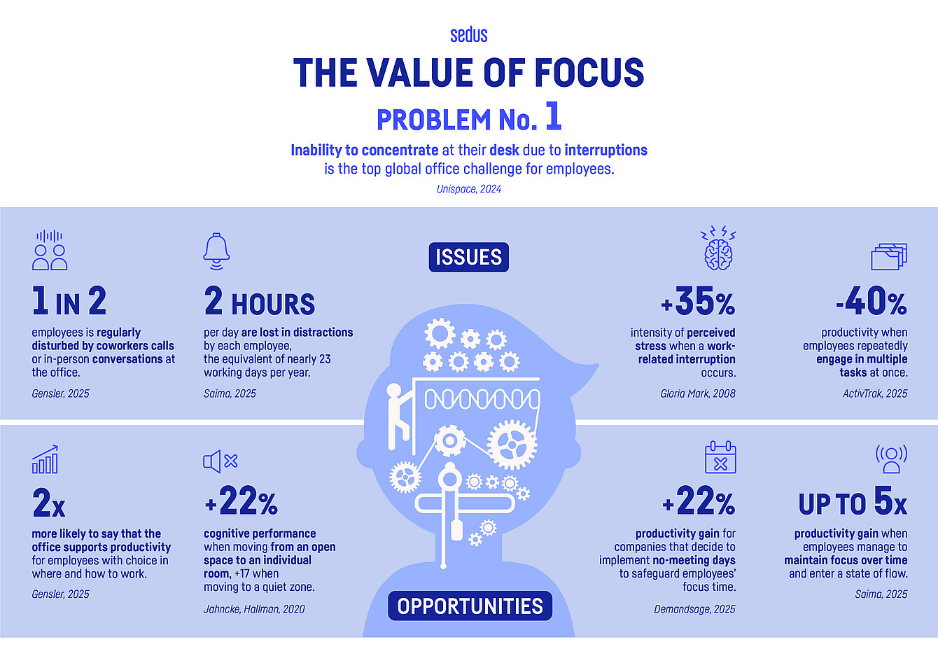 “The greatest misunderstanding of the last office decade is the belief that concentration simply means “less noise”. But research clearly shows: people lose focus not because of noise – but because they lack control over their environment,” says Ernst Holzapfel, Marketing Director at Sedus. “At a time when work is distributed across many locations, the office needs a clear purpose. Neuroscience shows that more than four hours of genuine concentration are biologically almost impossible. If we lose this time in the office, the company loses its most valuable source of energy.”