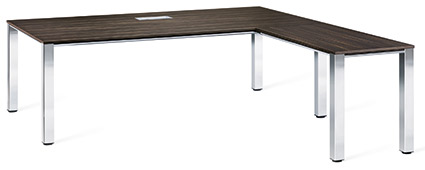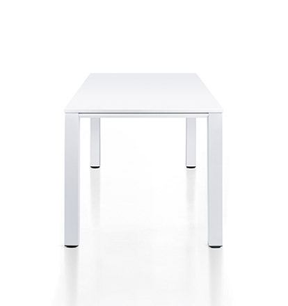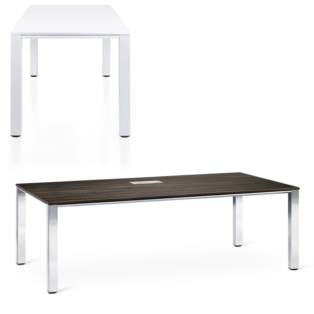 When a good impression has to be made, temptation prime cuts an excellent figure. And it was designed expressly for this purpose; this 4-leg desk range is the prestige version of the temptation family. Confidence, strength and lightness, whereby the special attraction is the formal contrast between the filigree frame and desk top, on the one hand, and the stele-like structure of the rectilinear leg shape, on the other. Complemented by a height-adjustable desk top and a lowboard, a productive but stylish working atmosphere is created.