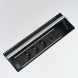 Con las tomas de corriente integradas en el tablero de la mesa, los cables y enchufes pueden ocultarse para crear un espacio de trabajo más limpio y ordenado.