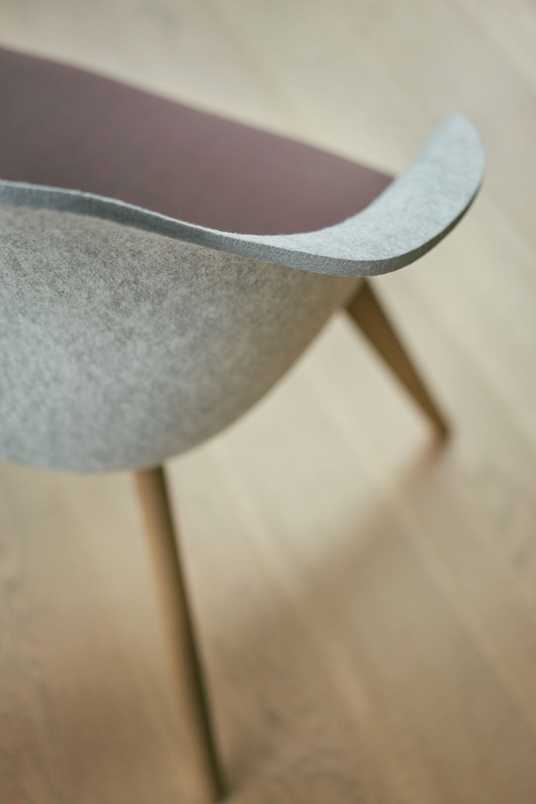 El cómodo acolchado del asiento y y el ergonómico apoyo lumbar integrado garantizan que el sillón no solo tenga un buen aspecto, sino que también garantice la máxima comodidad al sentarse. Por su parte, la carcasa del asiento de fieltro de PET sostenible es el se convertirá en el centro de todas las miradas.