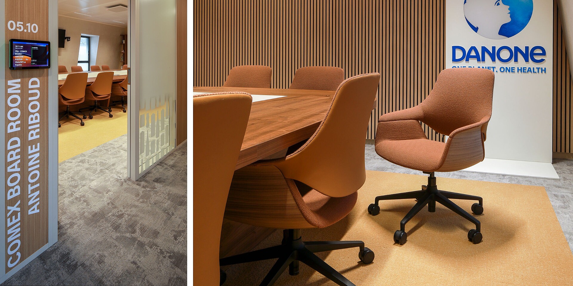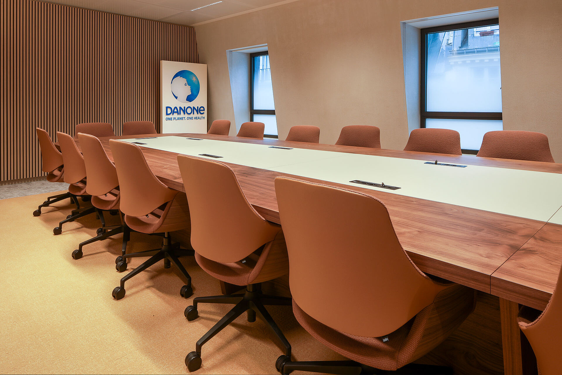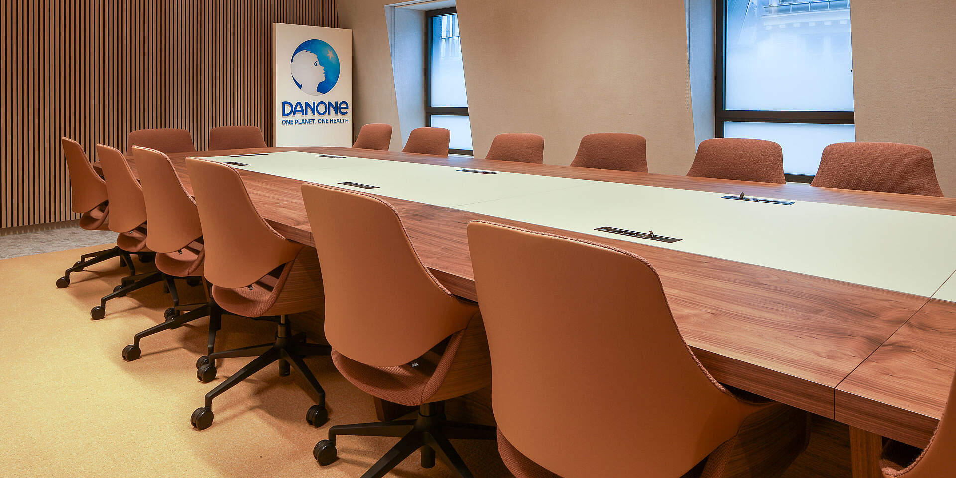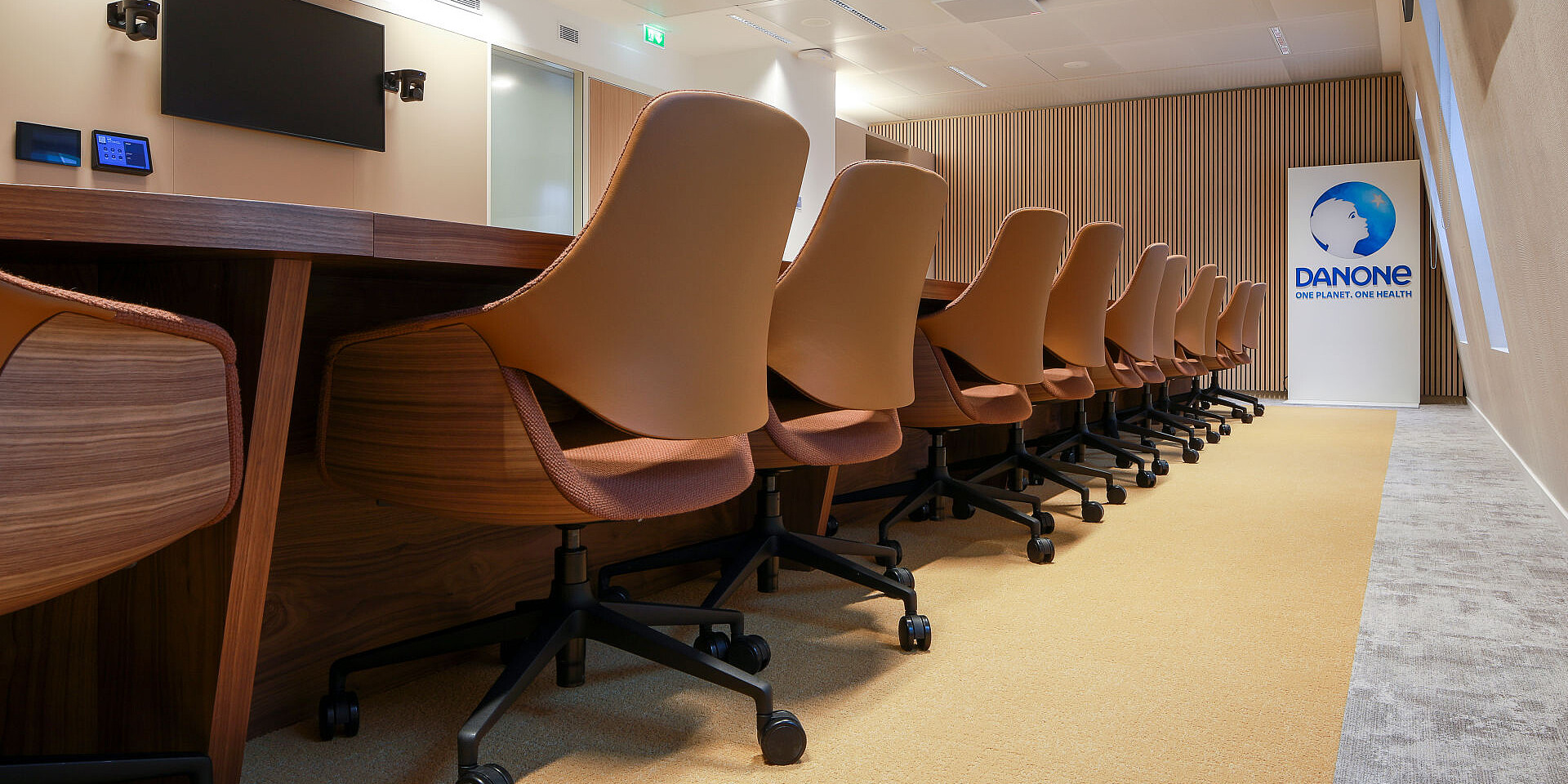 Les nombreuses salles de réunion et de séminaire constituent l’épine dorsale communicative du nouveau siège de Danone. Elles sont conçues pour différents formats de collaboration – des réunions d’équipe spontanées aux présentations formelles et ateliers. Équipées de fauteuils pivotants se:flair et de chaises de conférence se:mission, ces salles offrent non seulement un confort ergonomique, mais aussi une atmosphère accueillante qui favorise une collaboration structurée et des échanges créatifs.