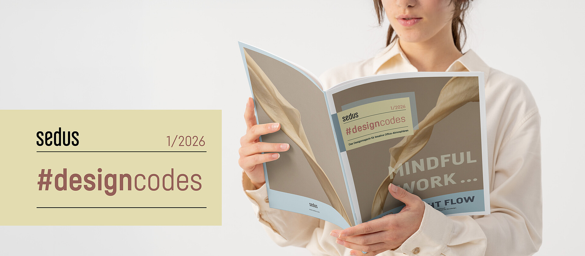 Il numero 1/2026 di #designcodes è dedicato alle tendenze cromatiche attuali nel mondo del lavoro e mostra come un office design attento e a dimensione umana possa portare maggiore leggerezza, flessibilità e produttività. Il leitmotiv ”Mindful Work” pone al centro l'individuo, con tutte le sue esigenze di tranquillità, ispirazione e interazione.