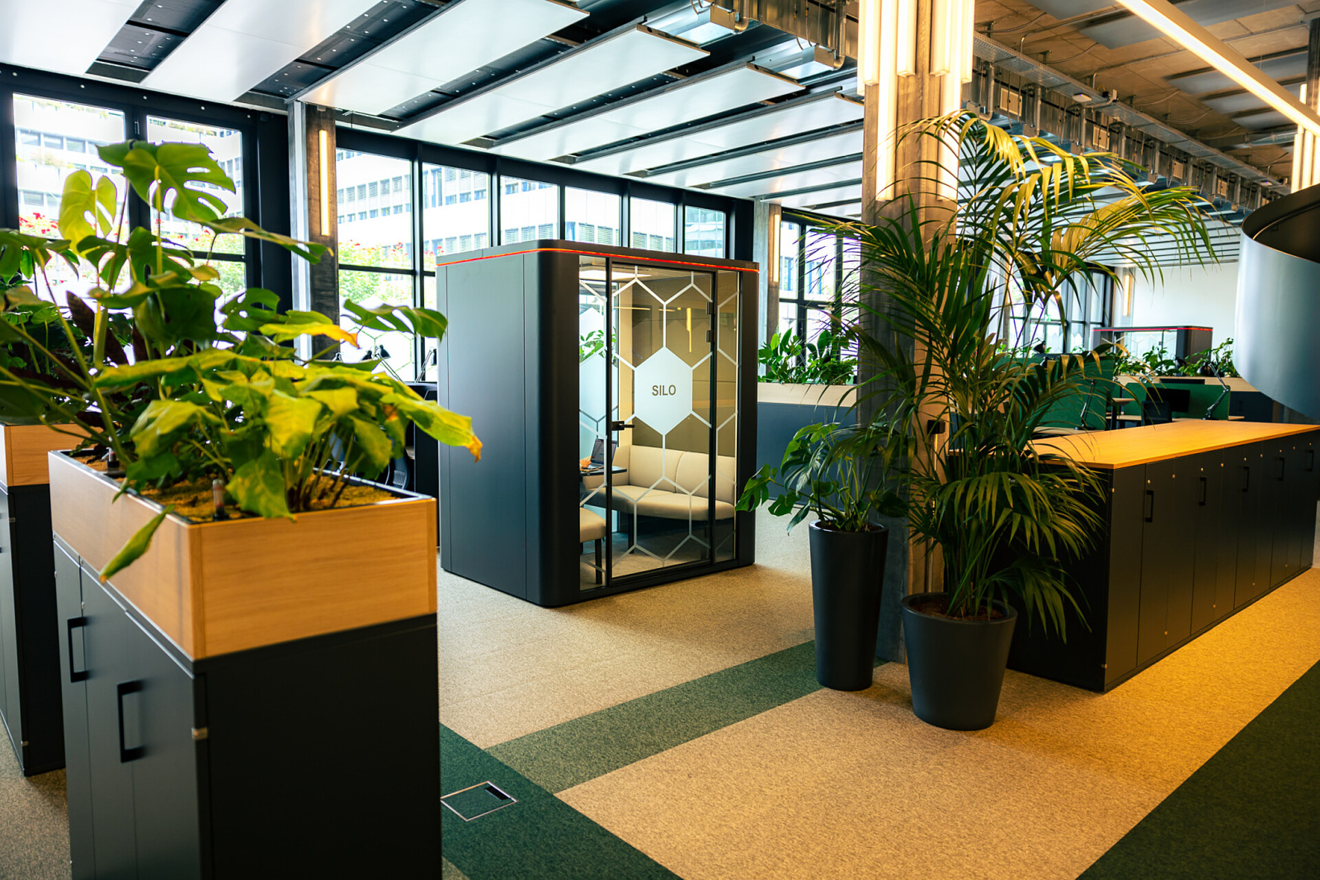 Bij Beekeeper – een jong softwareonderneming in Zürich – is een nieuwe werkomgeving gecreëerd op 1.400 vierkante meter. Dankzij een groot aantal agile en collaboratieve gedeelten en daarnaast stiltewerkplekken is het kantoor optimaal aangepast aan de behoeften van de medewerkers. Door het gebruik van kleuren en materialen die dicht bij de natuur staan, weerspiegelt de vormgeving ook de bedrijfswaarden en de corporate identity.