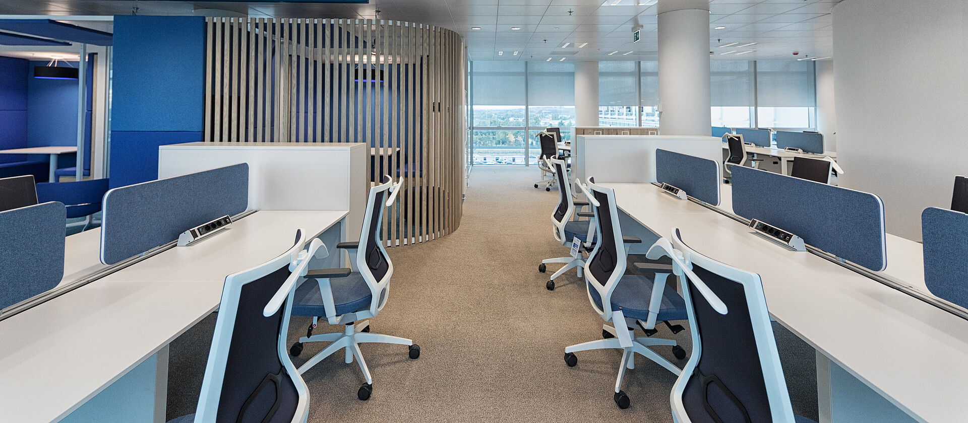 Voor elke medewerker op elk moment van de dag de ideale plek om te werken: zo luidt de belangrijkste doelstelling bij de organisatie van de ruimten en de inrichting. Geheel in lijn met de moderne identiteit en de rationeel-functionele geest van de onderneming is de lay-out uitgevoerd in een dynamische en vloeiende indeling. Gericht zelfstandig werken en ook interactief samenwerken: de ruimteplanning houdt rekening met elke situatie.